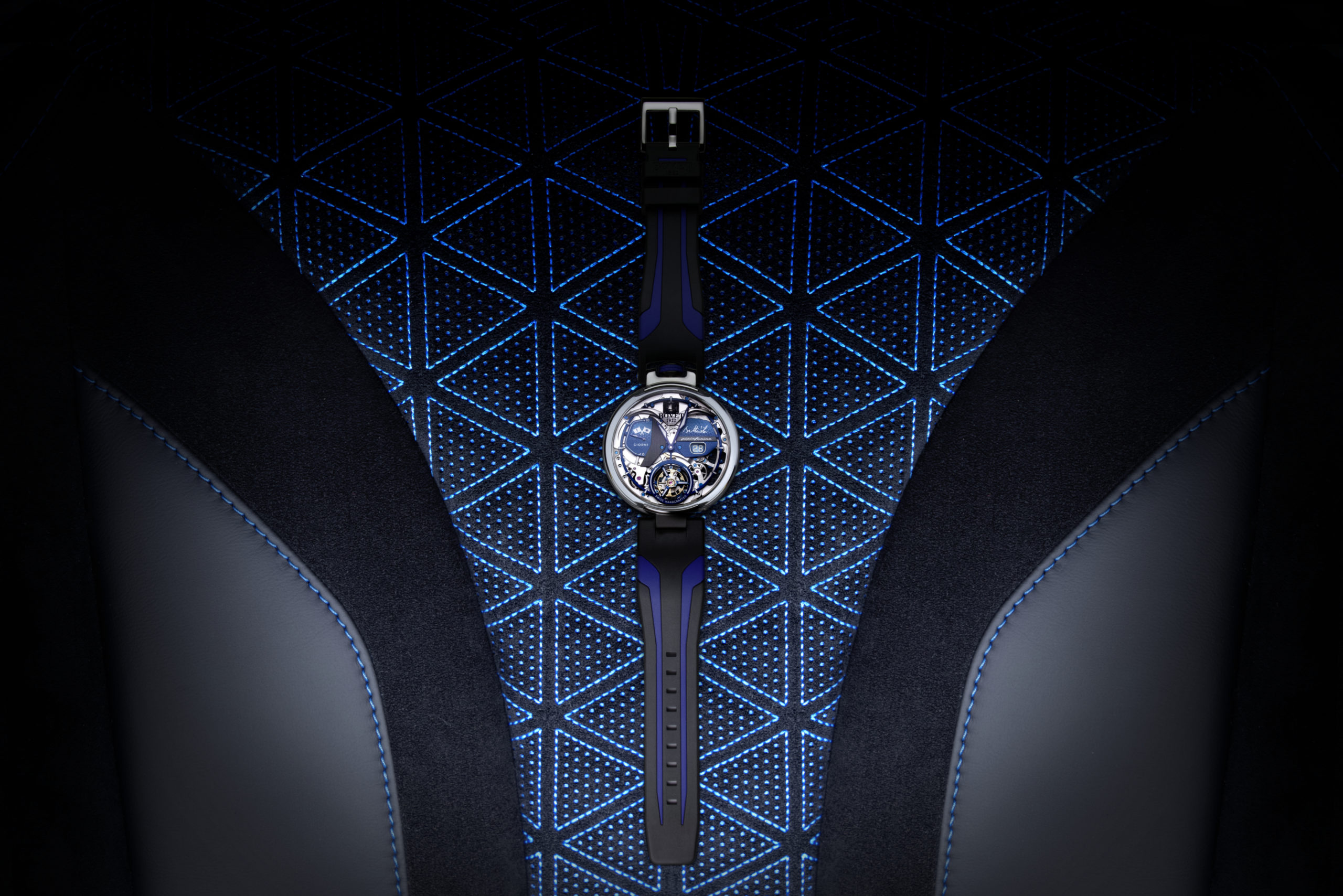 Together, they unveil this new tourbillon, an allegory of the Battista lineage—the fully electric hypercar-GT—designed to offer enthusiasts of the marque a timepiece that elegantly complements the driving experience. In order to promote sustainable luxury in harmony with the vehicle’s powertrain, Bovet has revised its manufacturing processes to collect and recycle all waste, including metal, oils, and treatments. The Battista Tourbillon is free from alligator leather and is worn with a two-tone rubber strap.