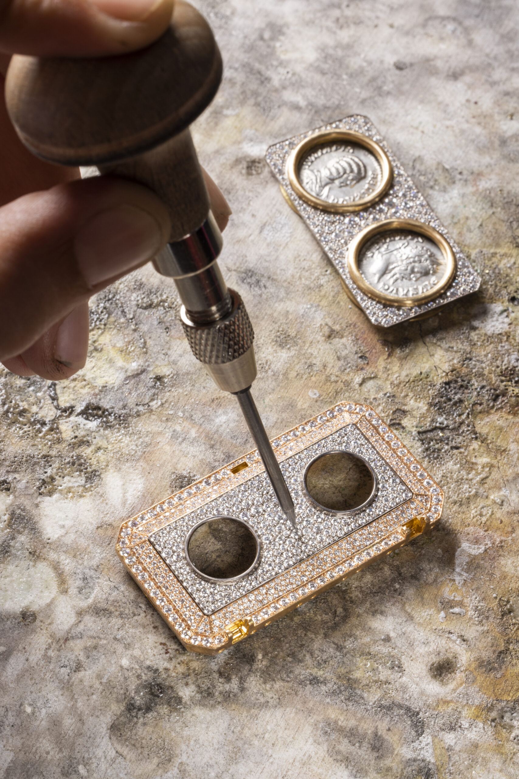 In the realm of watchmaking, Bulgari has introduced a new creation, the Monete Catene High Jewelry secret watch – also available in a Dual Time version – to enhance these precious artifacts. Crafted in 18-carat rose gold, it features an octagonal case reminiscent of the ceiling of the Basilica of Maxentius in Rome and a mother-of-pearl dial concealed under a lid set with diamonds. At its heart, the Monete Catene splendidly displays a millennium-old coin struck with the effigy of the famous Roman emperor Caracalla, who ruled over the Eternal City from 198 to 217 AD. Powered by the hand-wound Piccolissimo mechanical micro-movement, the watch extends into a precious chain bracelet – “catene” in Italian – whose gourmette style is rooted in the brand’s creative heritage.