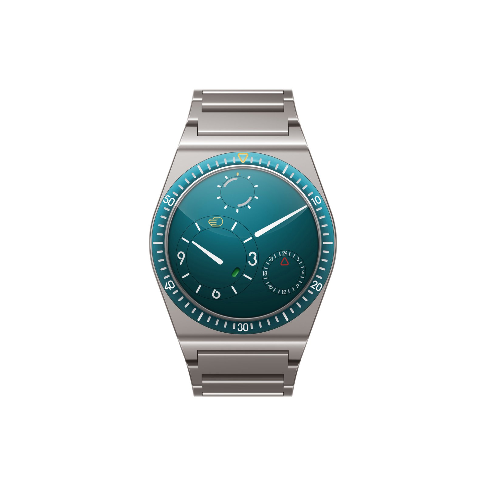 One of the main innovations of the TYPE 7 is its oil-immersed display, an exclusive technology by Ressence. This process eliminates light refraction, ensuring perfect legibility from all angles. The indications are also engraved and filled with Super-LumiNova®, a unique technology that provides optimal visibility even in low-light conditions.