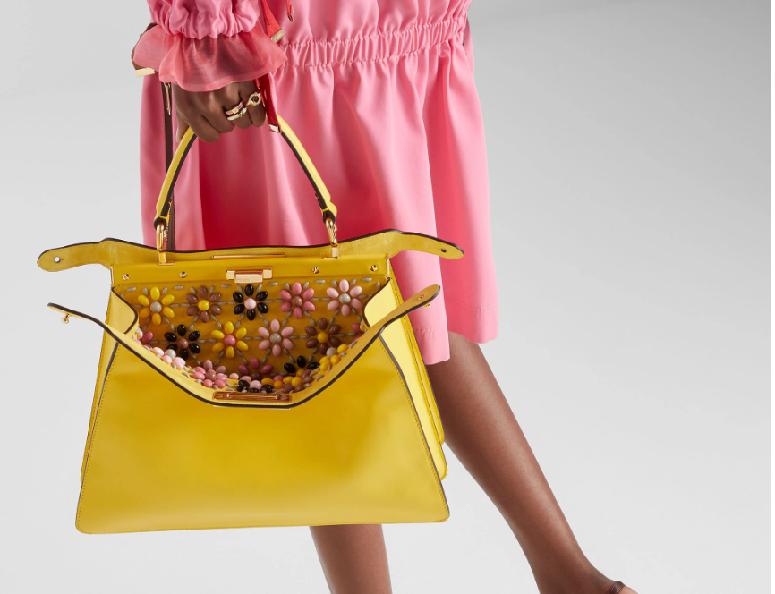 Inside, Fendi orchestrates an explosion of craftsmanship. Sequins, pearls, crystals, and studs compose precious landscapes, each entirely handcrafted. Some pieces require more than forty hours of work, where violet sequins illuminate mahogany-brown leather, while shades of turquoise and emerald green unfold in asymmetrical compositions. The pinnacle of this artisanal celebration is a high-jewellery version in pink mink, adorned with an abstract floral embroidery fully executed in pearls, demanding over two hundred hours of craftsmanship. Through this new interpretation, the Peekaboo asserts more than ever a vision of femininity, bold without ever being imposing, sophisticated, instinctive, and free.