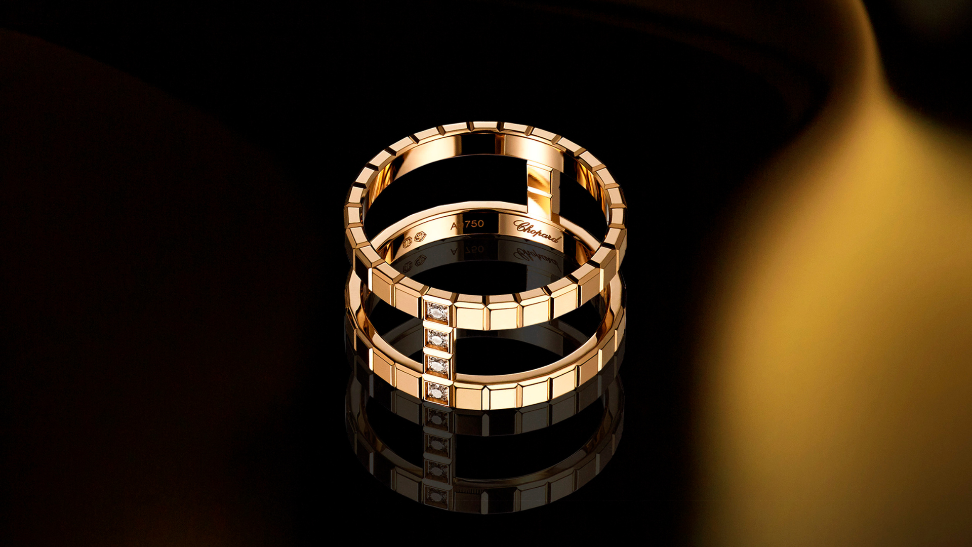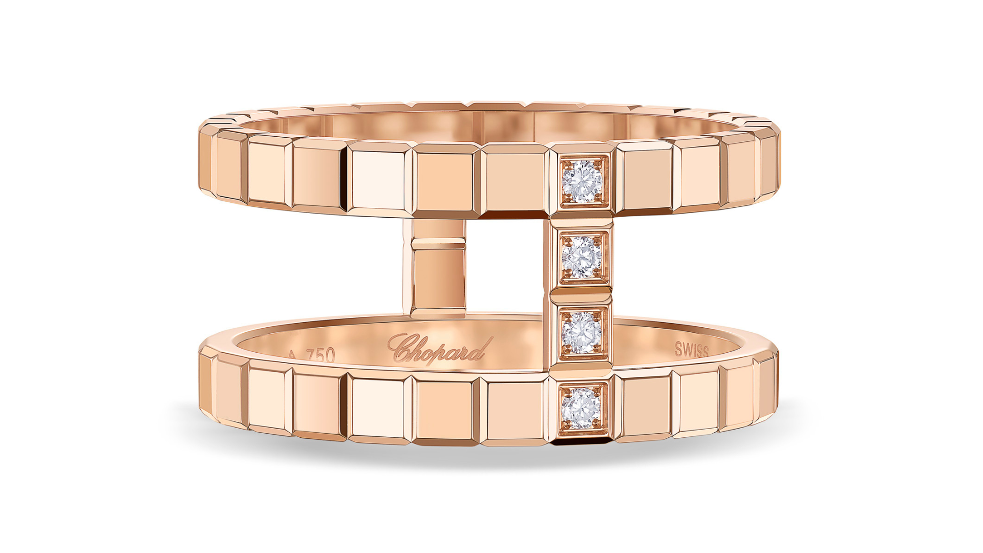 With its Ice Cube collection, Chopard captivates with a modern vision of jewelry, drawing inspiration from minimalist shapes that evoke the perfection of the cube. Crafted in ethical gold with meticulous expertise, this collection reflects the Maison’s ongoing commitment to responsible luxury. Featuring an androgynous identity, easy to wear and mix, this 18-carat ethical rose gold ring—composed of three cube-shaped bands partially set with diamonds—challenges conventional jewelry norms. A talismanic jewel to brighten everyday life.