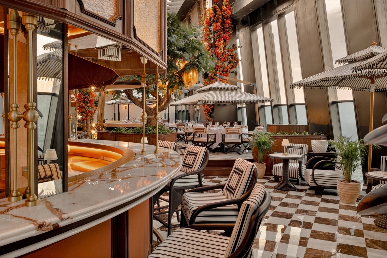 Designed by architect Richard Saunders, the restaurant unfolds as a refined salotto in the sky. Warm terracotta, soft whites, and earthy browns shape a space that feels residential rather than theatrical, where flow and comfort guide the experience. Spanning over 8,000 square feet, Lion in the Sun accommodates 160 guests across its indoor dining room and terrace, with capacity expanding for private gatherings. From every angle, the city becomes part of the ritual.