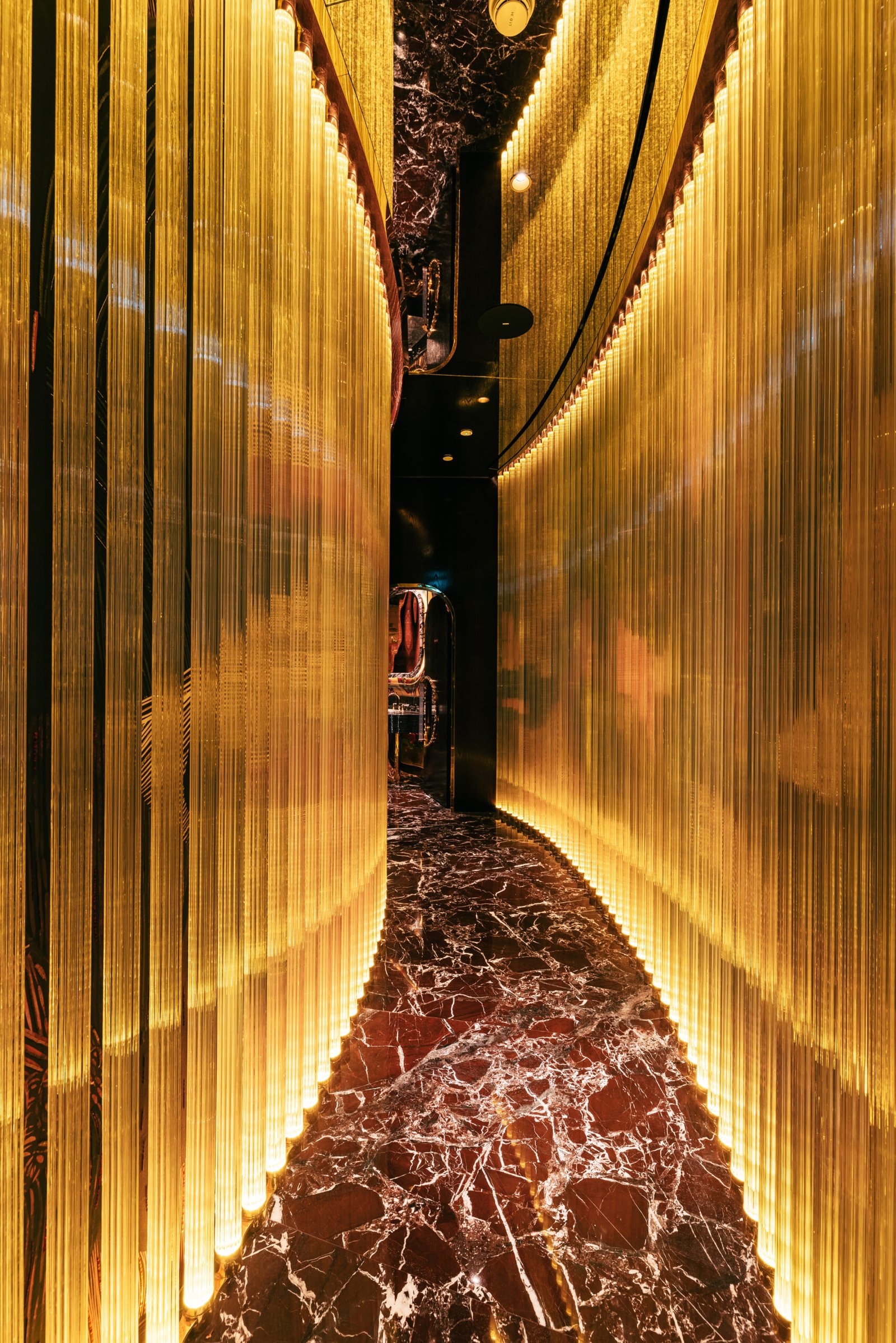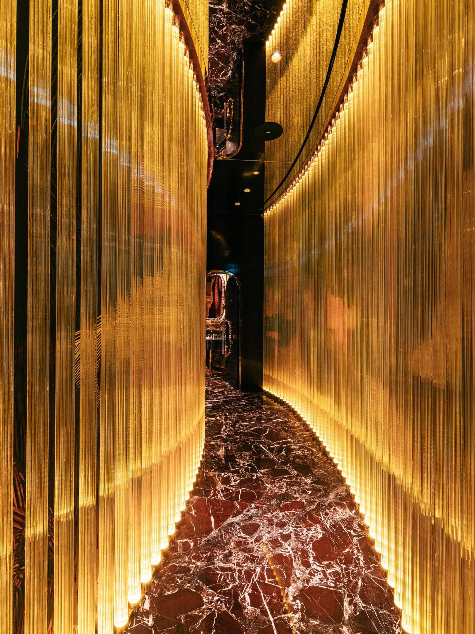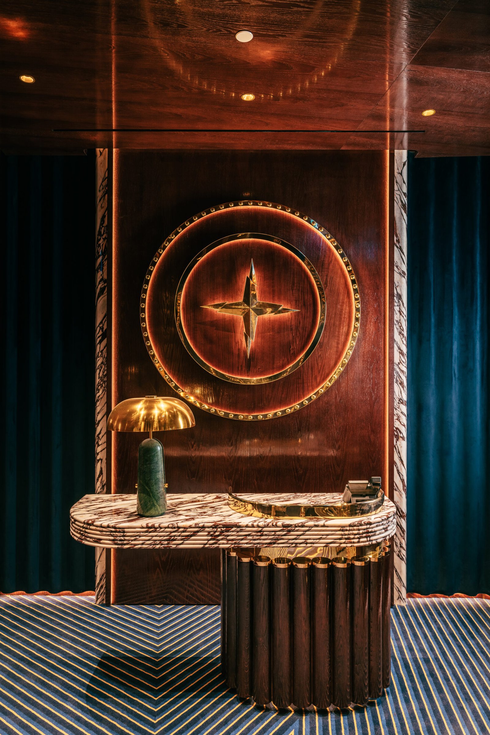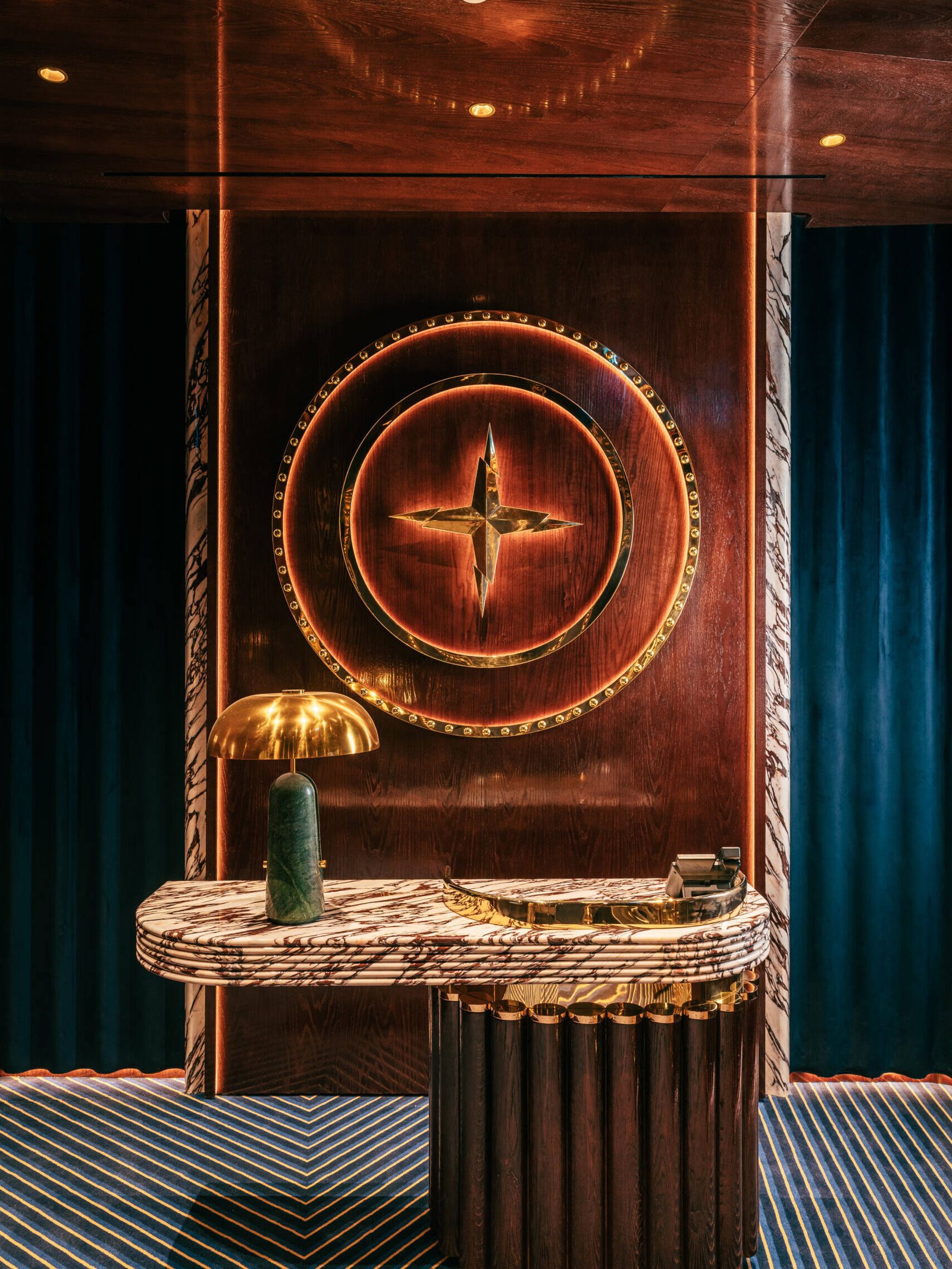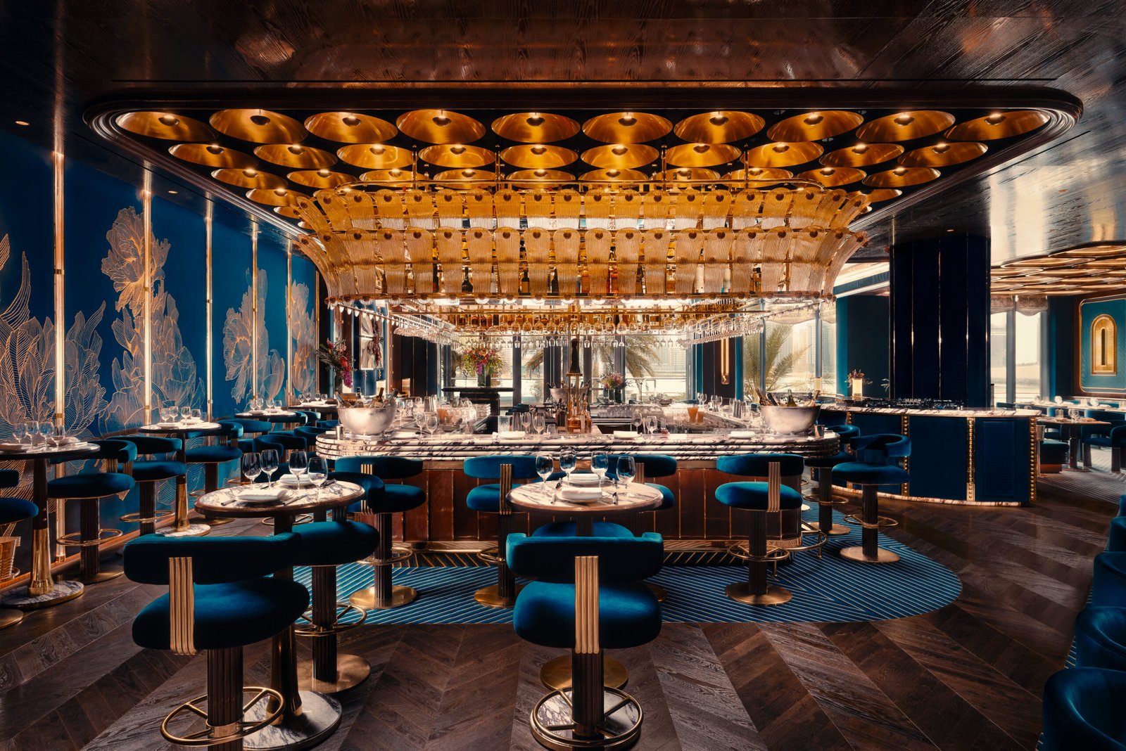 Yet to speak of Isabel purely in terms of its menu is to miss its essential language. Designed by DBM Studio, under the direction of Mahsa Gholizadeh, the interiors are composed with a near-couture sensibility. Polished brass and Calacatta Viola marble set a material foundation, while midnight blue velvets and hand-embroidered silks introduce a softness that borders on theatrical. The result is a concept that retains its London DNA while attuning itself to Abu Dhabi’s increasingly discerning audience, one that values discretion as much as display.