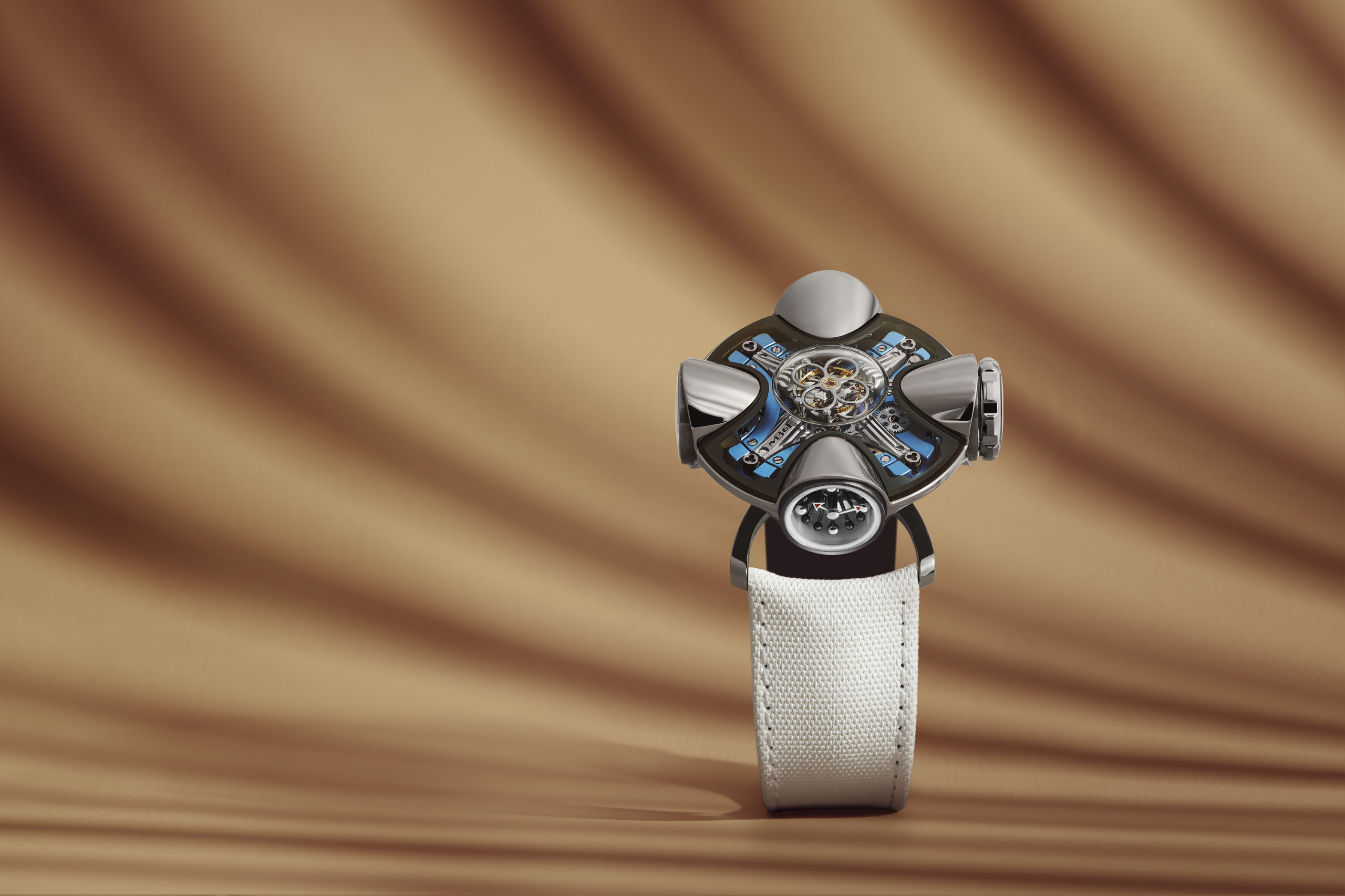 In the realm of timekeeping artifacts, MB&F persists in living within a parallel reality where past and future reflect upon each other, teaming up with the audacious collaboration of Eric Giroud, they unveil a new multi-dimensional horological machine. Originally inspired by the everyday, this Courrèges-esque architecture, or metallic Paco Rabane-style abode, is shaped with avant-garde precision. The real estate listing might have mentioned a terrace with an unparalleled view of a flying tourbillon, four pavilions ventilated by spacious windows, a rotating ground-level platform according to desired orientation, with its pivot generating the power for the power reserve. Even the temperature has found a place in one of the rooms of this quadrilobe. A function of unprecedented rarity when it comes to a watch simply “telling the time”. Continuing to overturn the norms of watchmaking, Max Büsser, in his usual fashion, dances on the edges of esotericism: the number 11 is indeed a master number, representing intuition, inspiration, and enlightenment since ancient times.