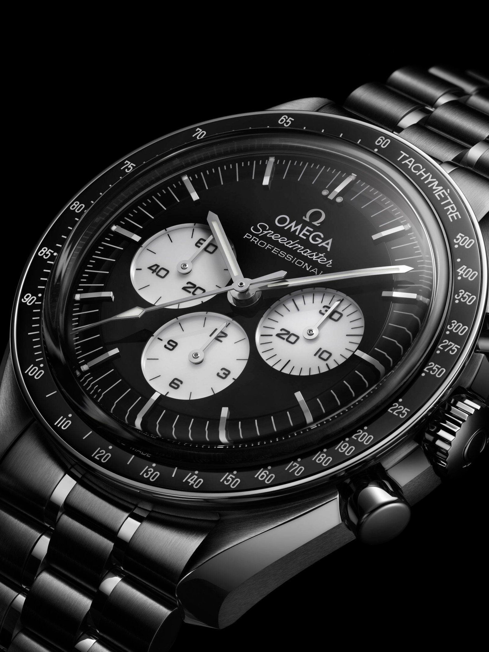 Few watches occupy the cultural stratosphere quite like the Speedmaster Moonwatch. Born as a precision tool and immortalised by space exploration, it has long transcended horology to become a design icon in its own right. For the year ahead, OMEGA returns to its legend with a strikingly graphic proposition, stripped back to black and white, and reimagined through a bold play of visual inversion.
