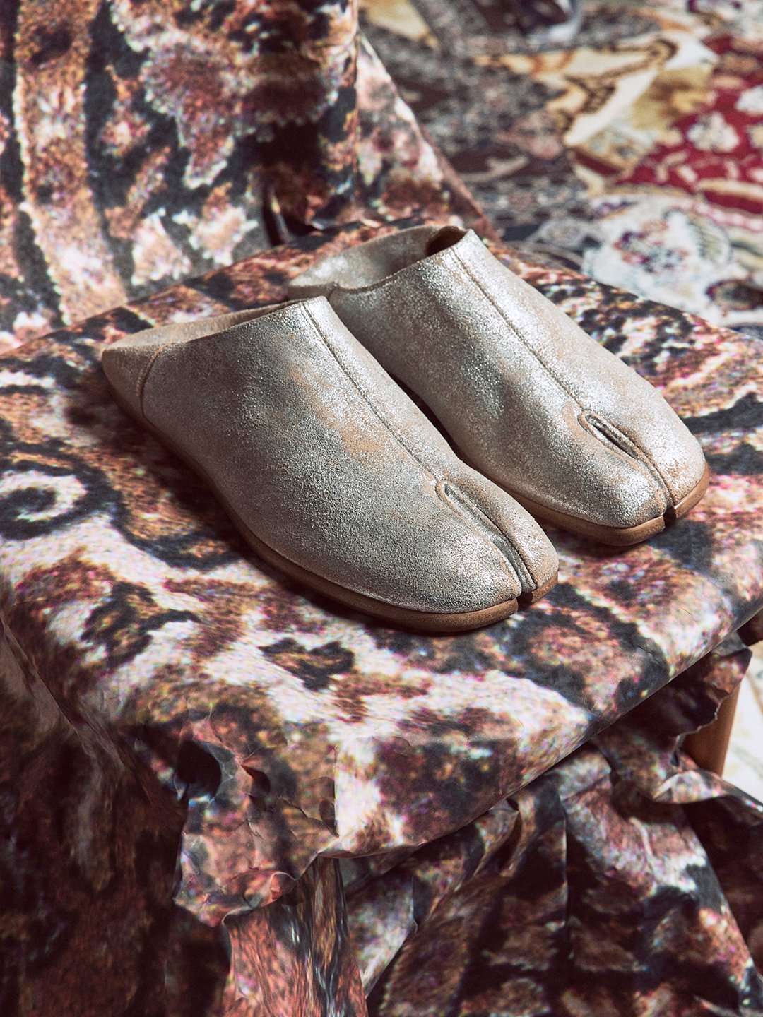 Maison Margiela approaches Ramadan with restraint rather than spectacle. For the Middle East exclusive capsule, the House reimagines its iconic Tabi silhouette in luminous gold finishes transforming the split-toe from avant-garde statement into evening refinement. The ballerina and babouche feel softened, almost ceremonial, while metallic leather introduces a subtle radiance suited for Iftar gatherings and Eid evenings. A gold wallet-on-chain and sculptural cuff echo Margiela’s coded minimalism, with the Four Stitches remaining intentionally visible a reminder that even in celebration, identity is never compromised.
