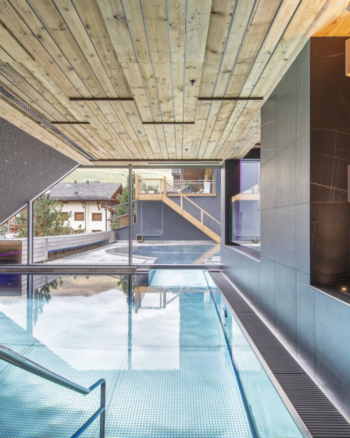 Yet it is indoors that the escape reaches its pinnacle. The spa, a true 1,300-square-meter cocoon, unfolds a universe imbued with softness and warmth. Pools, bathed in natural light and opening onto the Alpine panorama, offer an extraordinary sensory experience. Steam rooms release enveloping vapors, perfect for releasing accumulated tensions, while Himalayan salt saunas, rich in benefits, invite deep purification in a silence ideal for meditation. At the heart of this haven, signature treatments developed in close collaboration with the experts from the prestigious Esse and Dr. Burgener brands are experienced as true rituals, blending delicate textures with subtle fragrances.