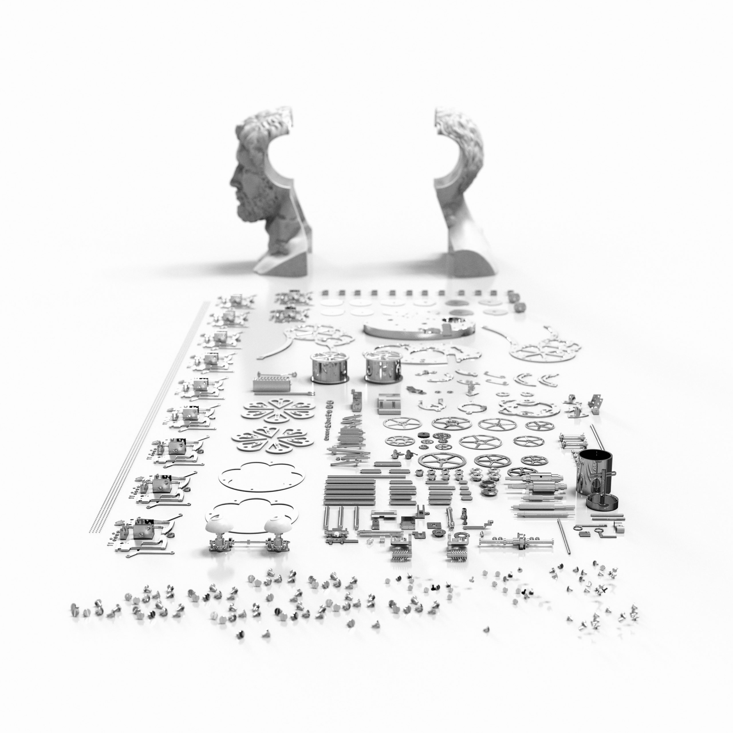 Behind this unique sculpture lies an unprecedented mechanical challenge, requiring exceptional artisanal expertise: 2,050 components and 2,000 hours of work. Le Temps Retrouvé thus stands as a true living work of art, completely reinventing our relationship with time.